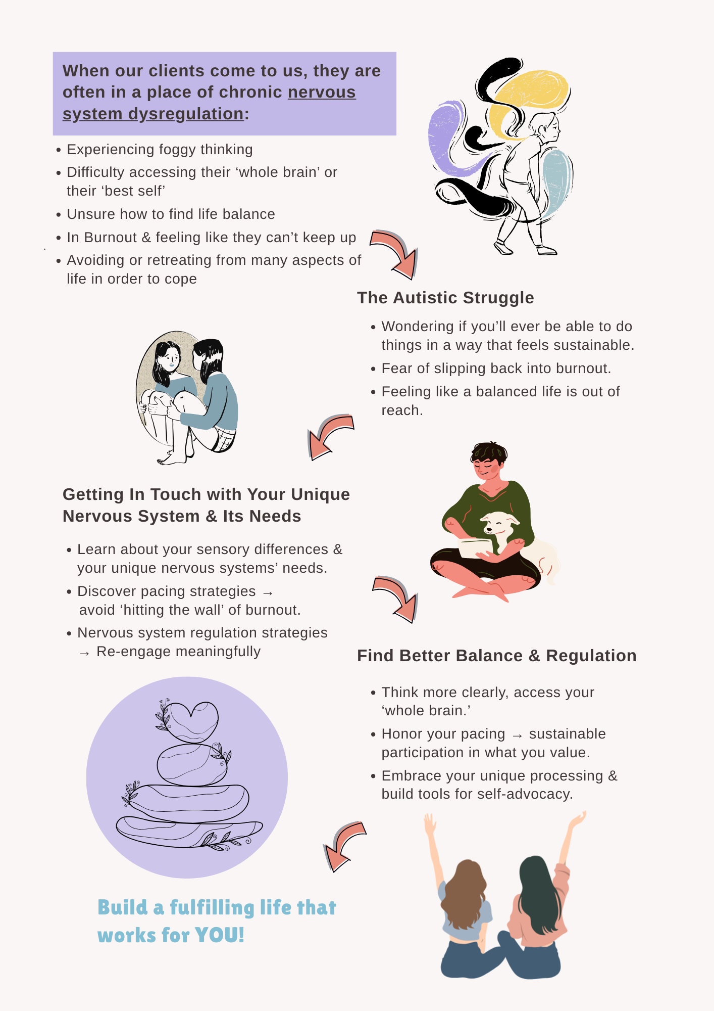 Due to nervous system differences, this type of regulation is much harder for autistic individuals or anyone with sensory differences! Our nervous system is like a computer’s operating system..if it’s not working, everything else is affected.